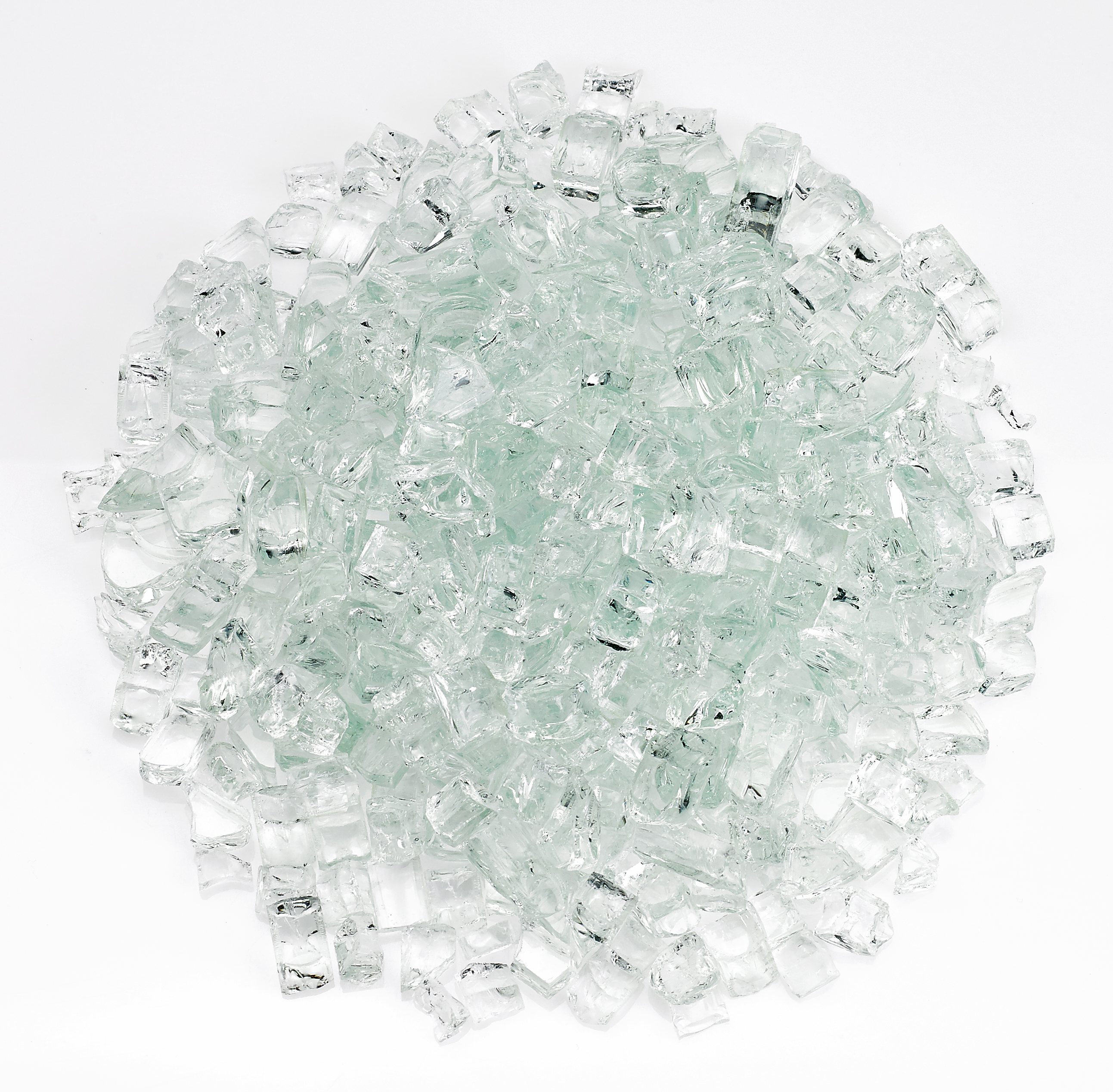This 1/2" clear fire glass is definitely a favorite among homeowners and designers alike. Its ice-like quality allows it to blend perfectly with any type of décor and color scheme.