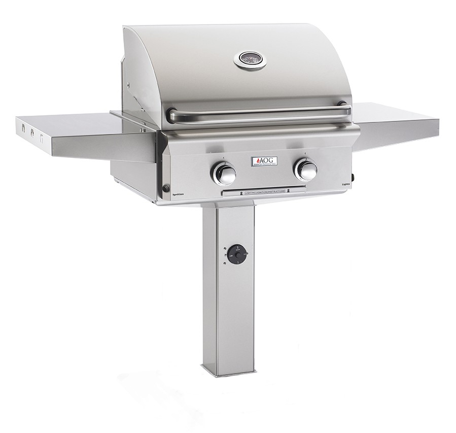 Designed for condos, apartment homes or anywhere space is at a premium, the American Outdoor In-Ground unit packs a lot of grilling potential into smaller spaces.  The American Outdoor Grill has been designed with a stylish, sleek appearance.  Its rounded hood and contoured face feature a satin finish that offers an attractive look to any outdoor kitchen.  The In-Ground model must be cemented into the ground. It features dual side shelves standard. Optional stainless steel tank shield is designed to conceal unsightly propane tank while safety chain keeps tank securely in place.  This model does not come with back burner and warming rack, if you would like those features check out the related products tab and see SKU 24NG.