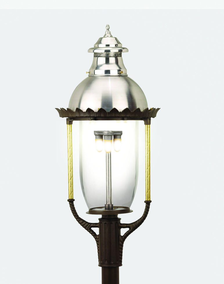 The Boulevard Lamp is the quintessential American gas street lamp. Patented in 1899, the design was a transition from square-sided to round globe lamps. An impressive 42 inches tall, the Boulevard recalls the grandeur of the Victorian Era but with the strength and simplicity of American character.