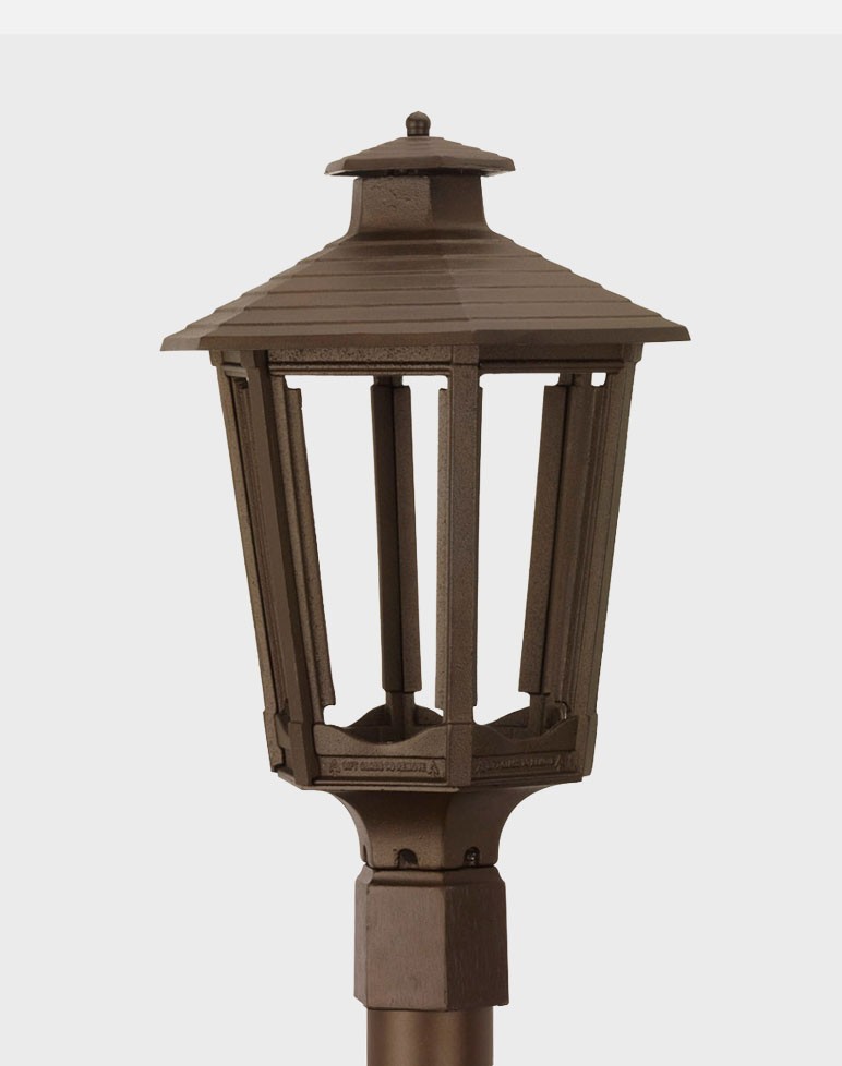 The Cosmopolitan is our classic gazebo lamp, offering the weight of six-sided design combined with an elegantly angled roof. The Cosmopolitan recalls late 19th century summer pavilions and the relaxed comfort of town parks and walkways, making it particularly striking as a garden accessory.