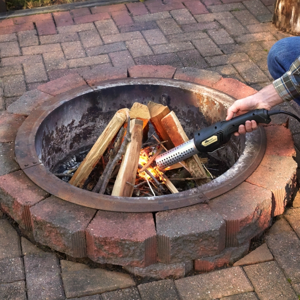 Super hot air ignites the flames, then fans them. Guaranteed to light every time,