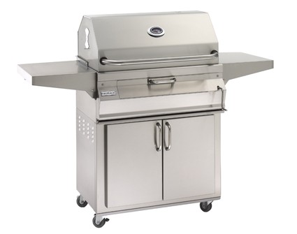 This unit features an all stainless steel construction, stainless steel cooking grids, and adjustable-height charcoal pans that allow you to control the heat. The convenient front loading door permits easy refueling. The Fire Magic Legacy Charcoal BBQ Grill - Smoker Oven/Hood - 30" x 18" includes a warming rack and portable cart
