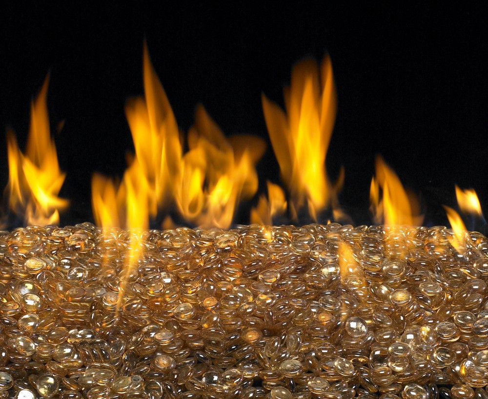 Glass crystals for application in Peterson burner systems and outdoor gas fireplaces/pits. The 5 lb., 7.5 lb., 10 lb. or 40 lb.pound bucket of specially formulated, tempered and tumbled glass is safe to handle since it has no sharp edges. Enjoy Glass-Fyre's brilliance for a lifetime. Flames dancing through shimmering glass offer icy-hot outdoor or indoor mood.